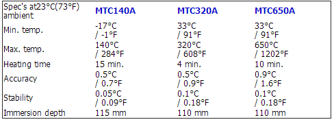 MTC系列包括3种型号,分别对应不同温度范围。所有型号都有RS232接口,JOFRACAL 校准软件为标准配置。